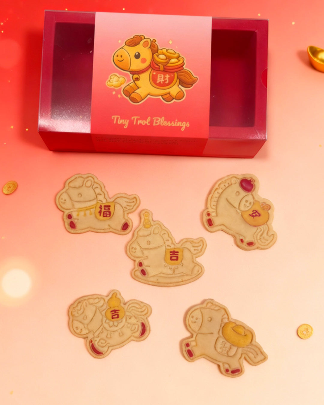 Inspired by the Year of the Horse, each cookie features an adorable trotting horse carrying auspicious Chinese characters — a sweet way to celebrate the season with meaningful bites.